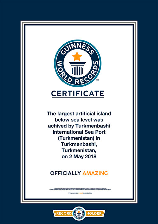 Türkmenbaşynyň Halkara deňiz portunyň gurluşygynyň barşynda deňiz derejesinden aşakda ýerleşýän iň uly emeli ada döredildi. Göçüp-gonýan guşlar üçin döredilen bu emeli ada hem 2018-nji ýylyň 2-nji maýynda Ginnesiň rekordlar kitabyna girizildi.